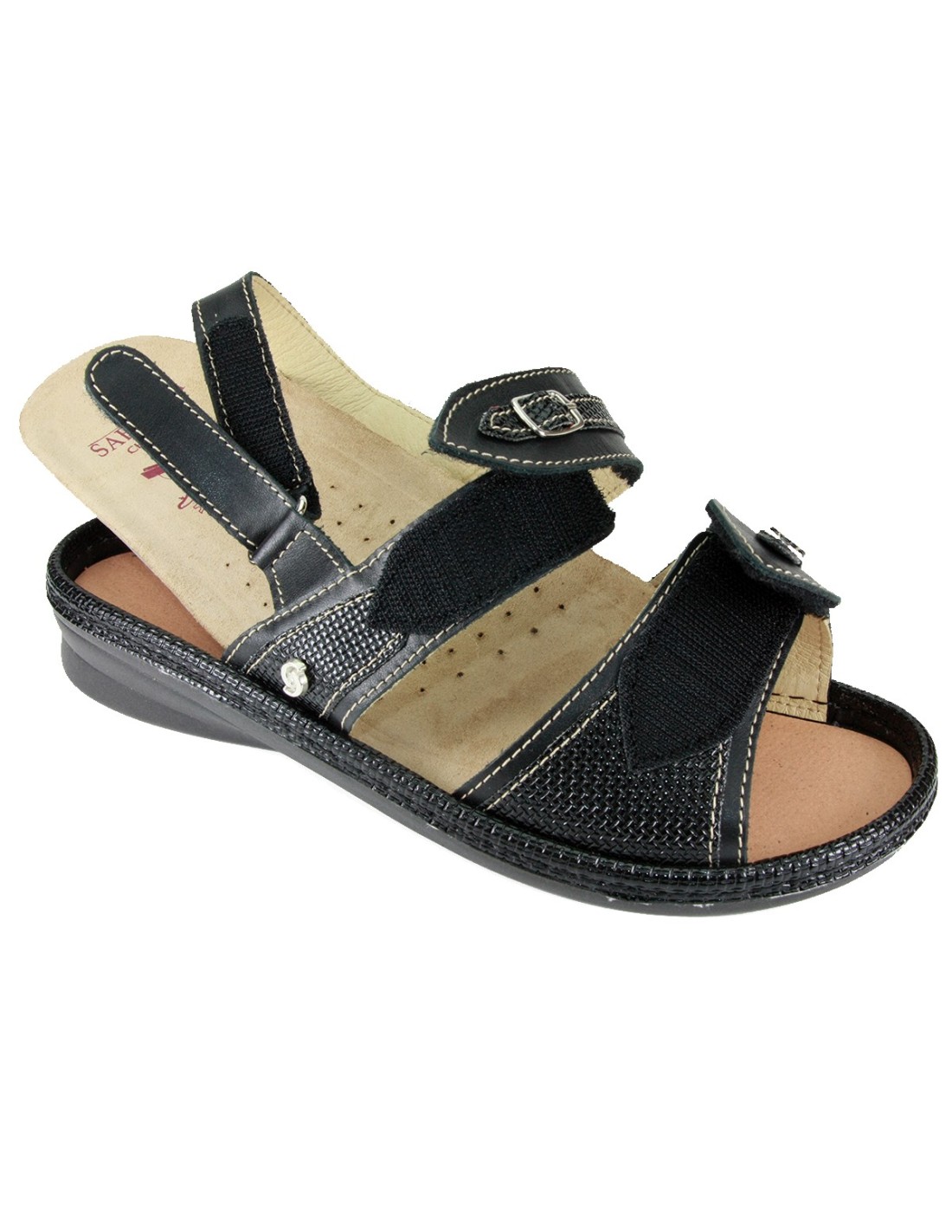 Calzatura comada ed elegantegrazie ai due ampi strappi in velcro permette una grande adattabilità anche ai piedi più deformati, la stabilità è conferita dall'allaccio sempre in velcro dietro il tallone. Realizzata in morbidi materiali Italiani dermocompatibili. La praticità di questa calzatura senza rinunciare alla qualità Sabatini oltre che ad una estetica particolare. Nuovo plantare in lattice, molto morbido con la caratteristica di ammortizzare il peso del corpo riducendo il carico sulle articolazioni oltre che estraibile per alloggiare quello ortopedico su misura.