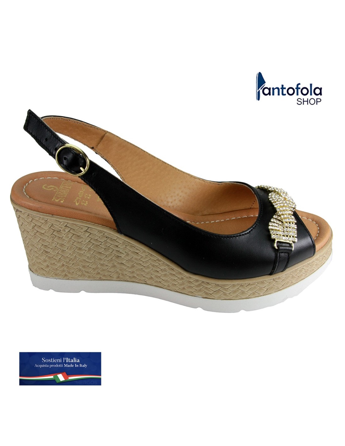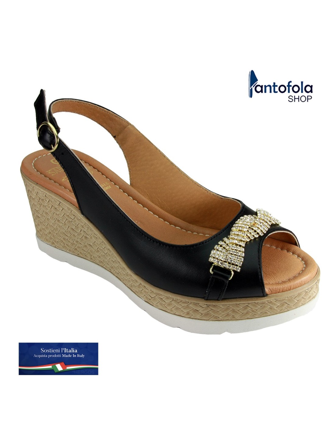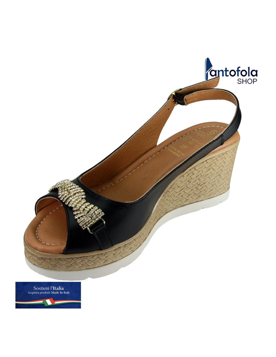 Calzatura caratterizzata da uno stile nuovo, giovane ed originale. Articolo che fa parte di una nuova linea, nuovi pellami morbidi e giovanili, calzatura leggerissima e massimo comfort. Tomaia dai colori e pellami innovativi. Massima attenzione per i dettagli. La comodità che si lega con l'estetica. Zeppa alta circa da 8 cm dietro e 2,8 cm davanti. Realizzata con una regolazione sia elastica che con fibbia dietro il tallone. Impreziosita da un inserto sulla tomaia.