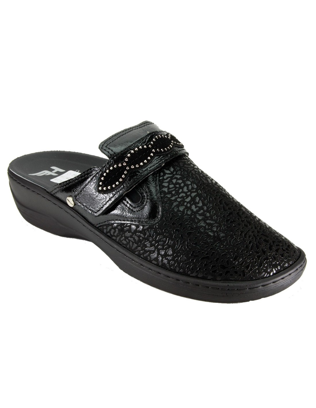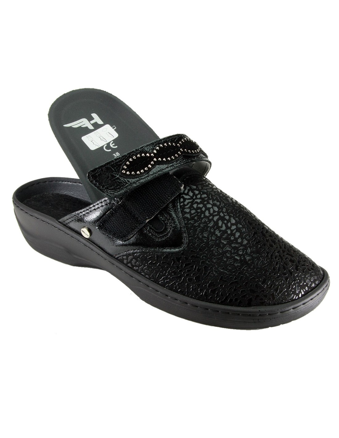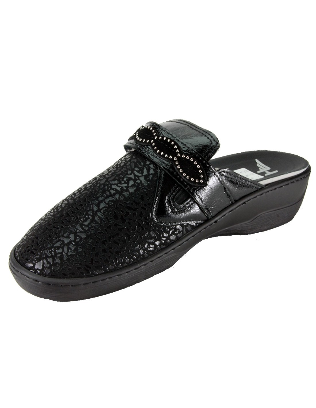 Calzatura sabot per alluce valgo, invernale e mezza stagione. Buona regolazione grazie all'ampio strappo, suola antiscivolo, realizzata con materiali elastici, morbidissimi, made in italy, di primissima qualità e dermocompatibili. Specifica per alluce valgo e dita a martello, grazie al materiale elastico che la compone non comprime le deformità delle dita. Il massimo della comodità senza rinunciare all'estetica, calzata comoda e pianta larga. Cuciture realizzate a mano. Nuovo plantare in lattice, molto morbido con la caratteristica di ammortizzare il peso del corpo riducendo il carico sulle articolazioni oltre che estraibile per alloggiare quello ortopedico su misura. Altezza del tacco 3.8 cm circa.