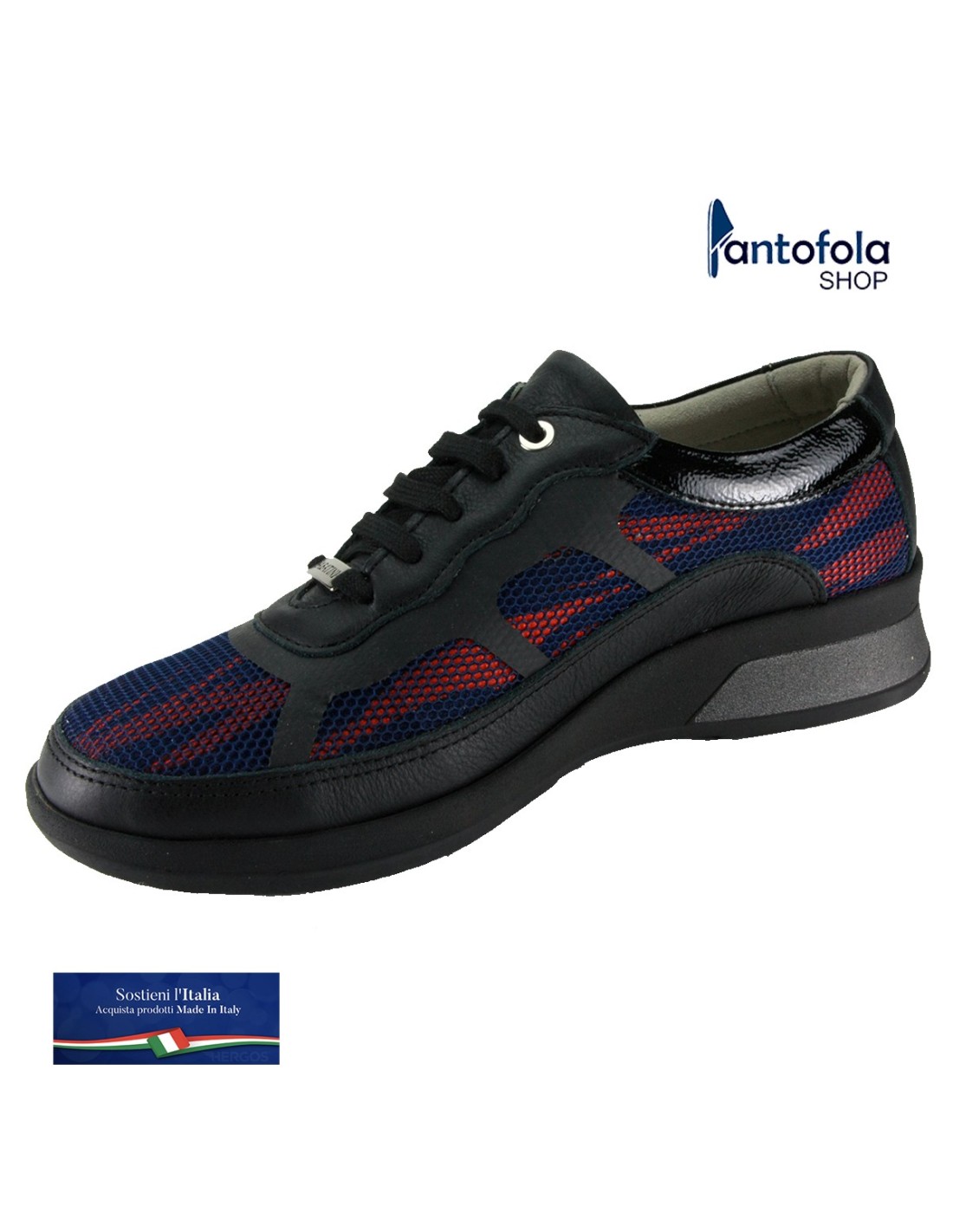 Calzatura comoda ed estremamente pratica. Realizzata con materiali di prima scelta e tecniche di lavorazione all'avanguardia. Tacco alto circa 4 cm. Calzatura superleggera grazie ai suoi nuovi materiali innovativi. Nuovo plantare in lattice, molto morbido con la caratteristica di ammortizzare il peso del corpo riducendo il carico sulle articolazioni oltre che estraibile per alloggiare quello ortopedico su misura. E' dotata della speciale soletta estraibile per avere una calzatura sempre nuova e conforme al D. Lgs. 96/47 e seguenti (Calzatura atta ad accogliere plantare di serie o su misura D.M. di serie Classe I) marcatura CE.